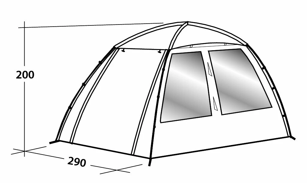 The smart dome style Day tent adds extra living space, featuring four large side windows with curtains, a sewn-in groundsheet and large front and rear doors. The front door or rear door can be set up as a canopy and two large roof vents allow excellent ventilation.