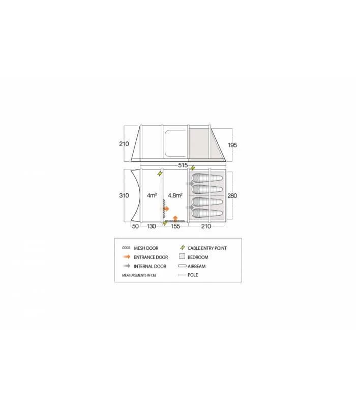 - Fully zipped front awning – The optional awning is attached with a full zip to eliminate gaps between this and the tent. The new front door has a curved zip which can be used from either side and will pack into a window pocket at the base so no more rolling away