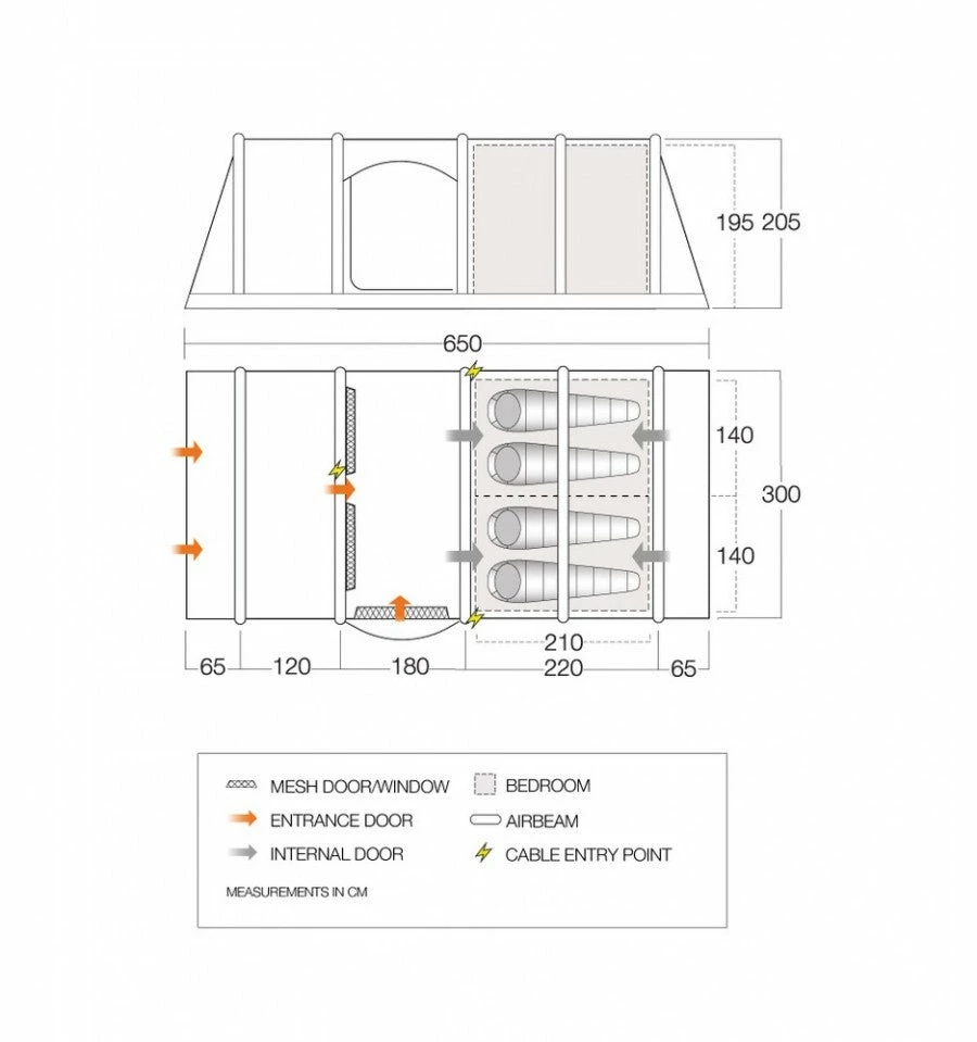 New for 2021, the Valencia II Air 450 tent sleeps up to 4 people and benefits from a pre-attached awning, full stand up height throughout and a large Emperor Bedroom with our Midnight bedrooms, reducing early morning light. Further features include a covered side door, great for getting in and out of the tent on a rainy day and is made from our robust Sentinel Dura fabric, giving you peace of mind no matter the weather. The Valencia also features a dedicated rear storage area, perfect for hiding away all your kit, allowing you to relax in a clutter free environment.