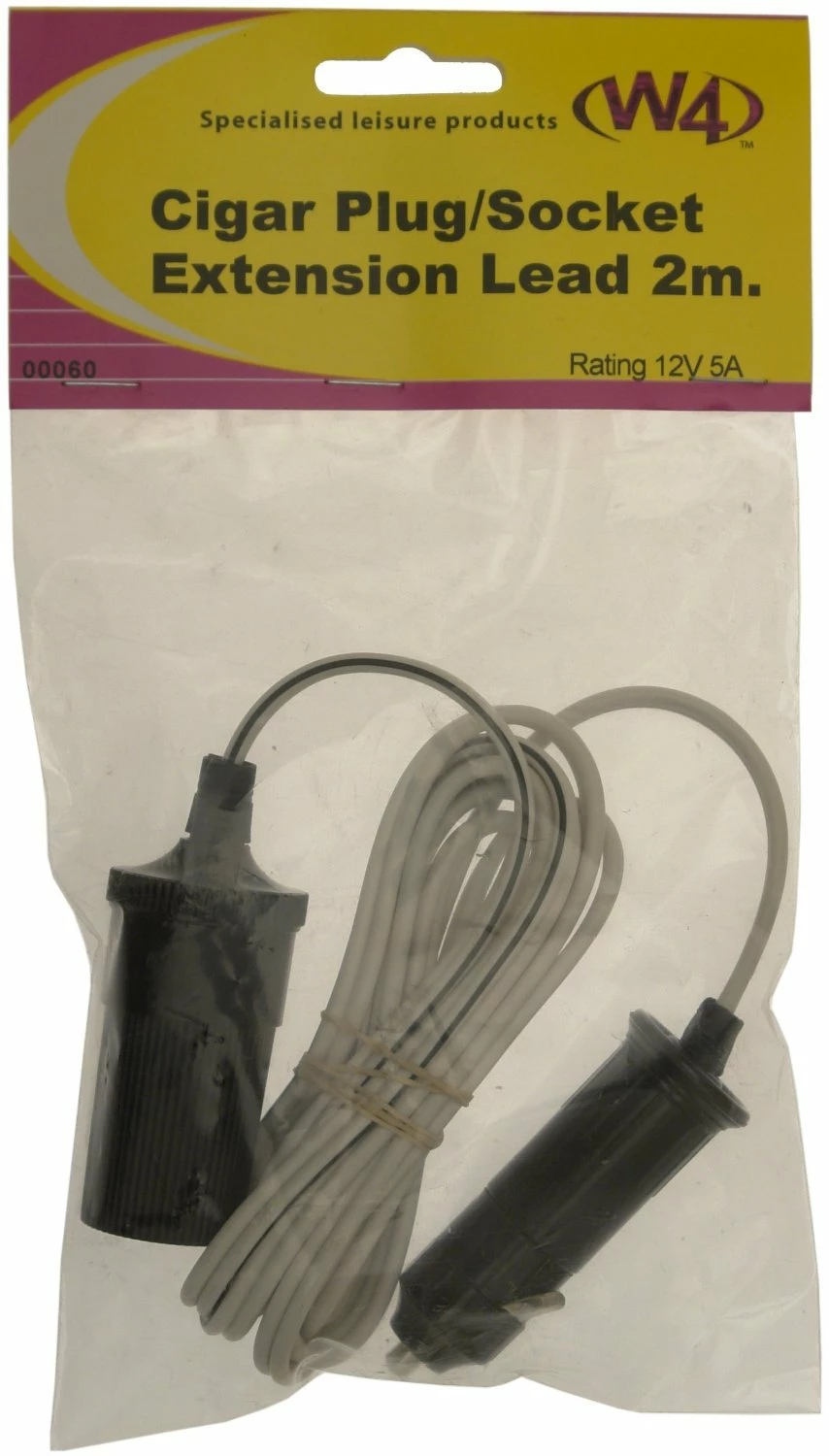 Adaptor lead to extend cigar lighter socket to a distance of 2 metres. Maximum current 5amp. Fuse (5amp) built into plug