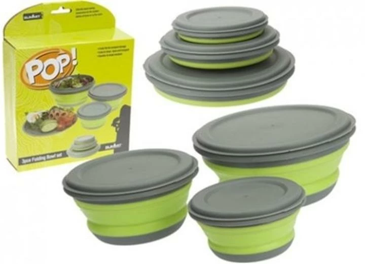 This POP! 3 piece folding bowl set is ideal for travelling and everyday use too. Simply fold down for convenient storage when not in use.