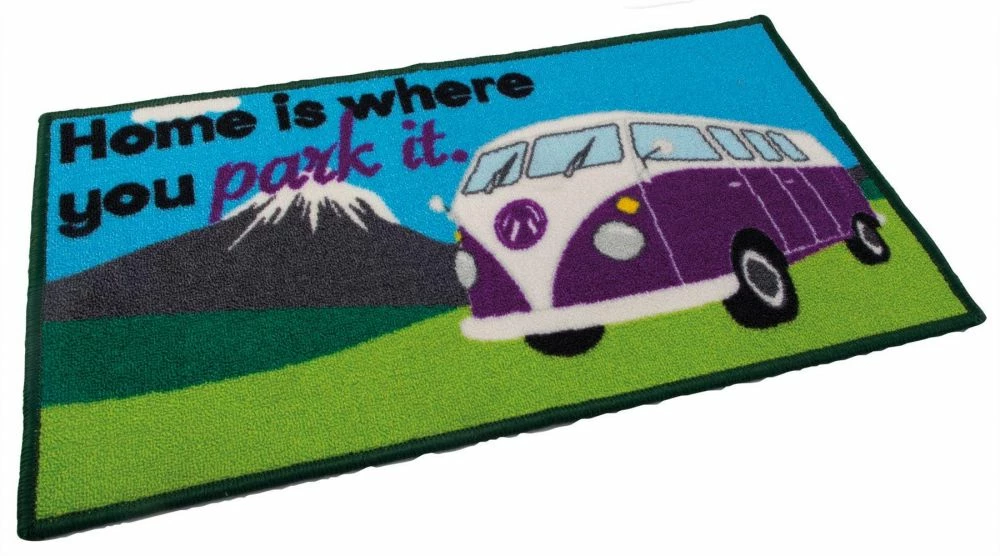 Exclusive quest designed Quest Washable home is where you park it Campervan mat. A high quality indoor mat with an attractive, fun and bright home is where you park it design. The top is a loop pile with a P.V.C. backing. This mat is machine washable, 40 x 70 cm in size and only weighs 0.3 kg. It looks great not only in the tent, awning o gazebo, but in a house, garage, shed or any indoor location.