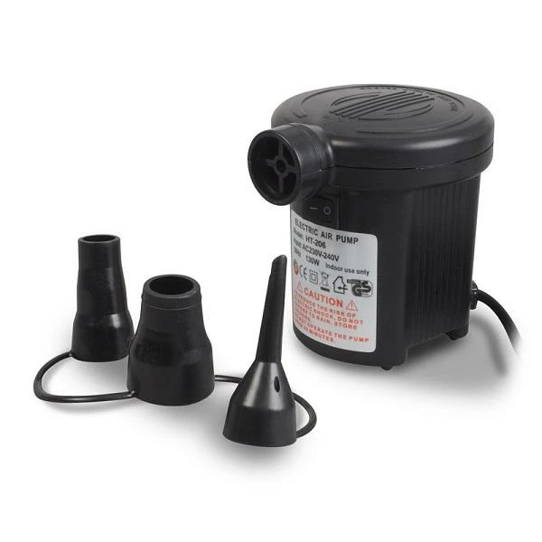TheΒ Kampa Jet 230V High Volume Pump comes withΒ three nozzles that come with the pump and its fast inflation, the Jet is ideal for all airbeds and inflatable toys.