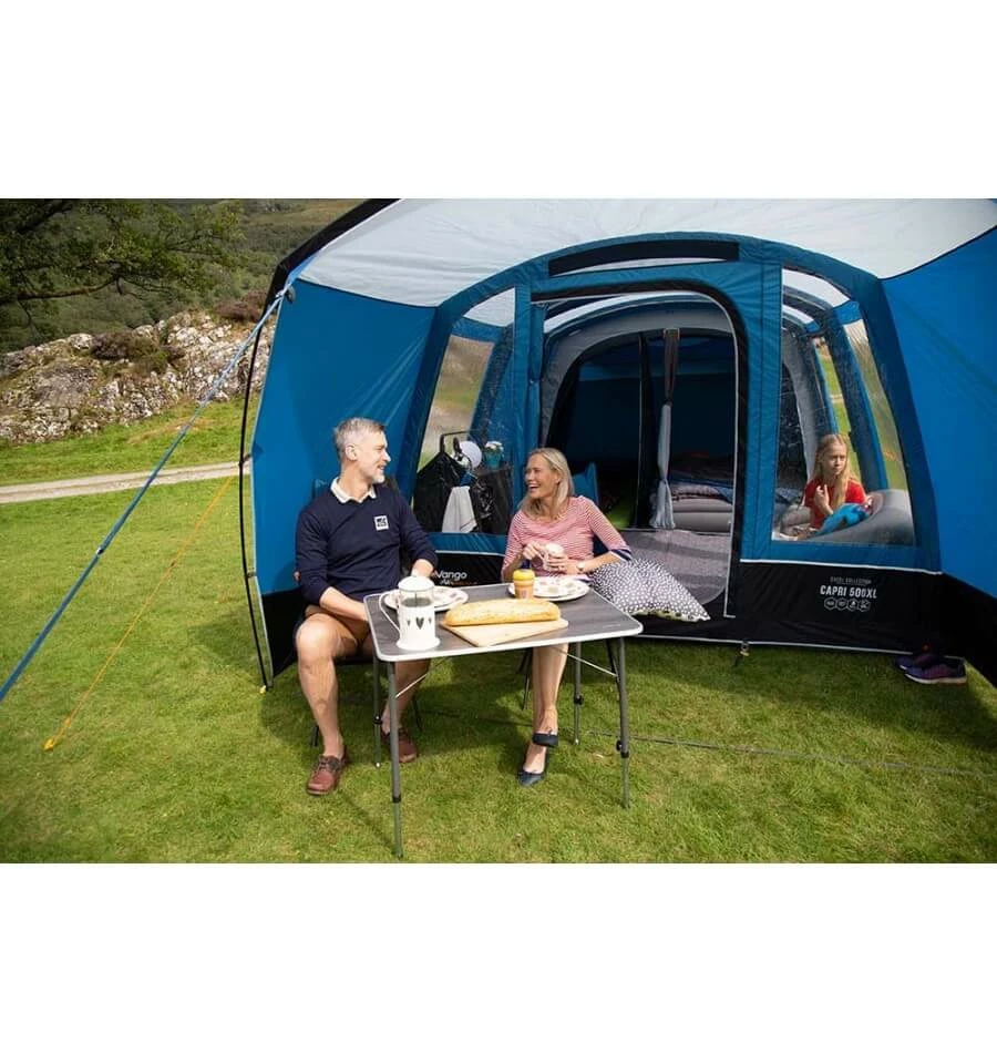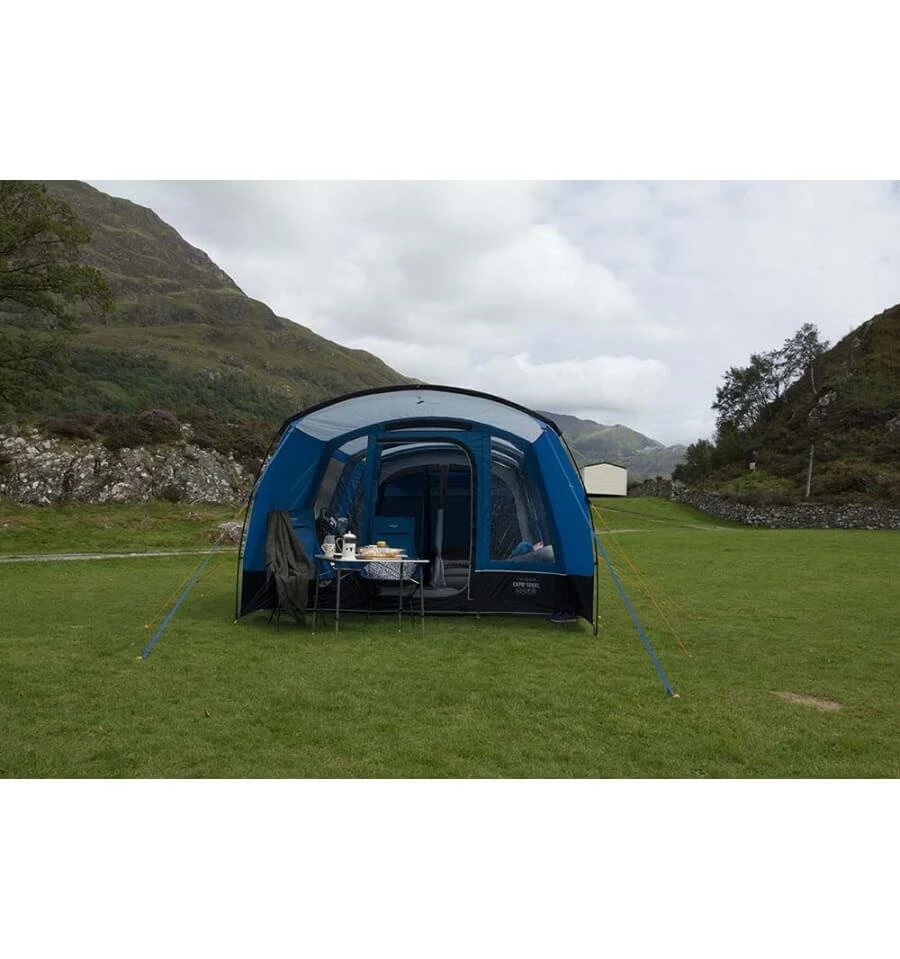 Now available in our sophisticated sky-blue colour way, the Capri 500XL is perfect for smaller families and couples who need a quick to pitch tent with extra space. Designed with our Sentinel Dura fabric (4,000mmHH), the Capri will perform under the demands of both rain and shine. The Capri includes plenty of great features such as our unique AirSpeedยฎ System allowing for fast inflation and deflation, SkyTrackโข II hanging system compatible with SunBeam lights and SkyStorage and our Diamond Clear windows, meaning you can truly enjoy the wonderful views.