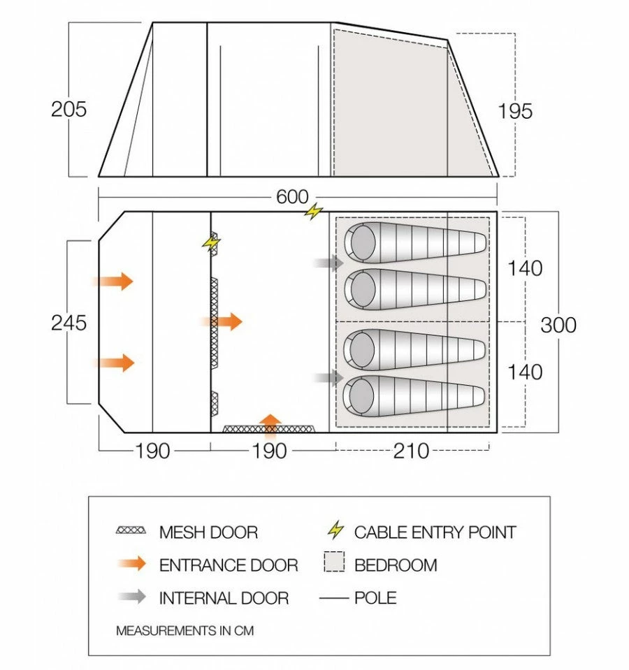 - Vango AirZone™ – High and low level ventilation panels combine to create a comfortable flow of air through the tent. Air circulation is essential for reducing condensation
