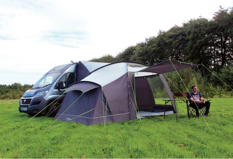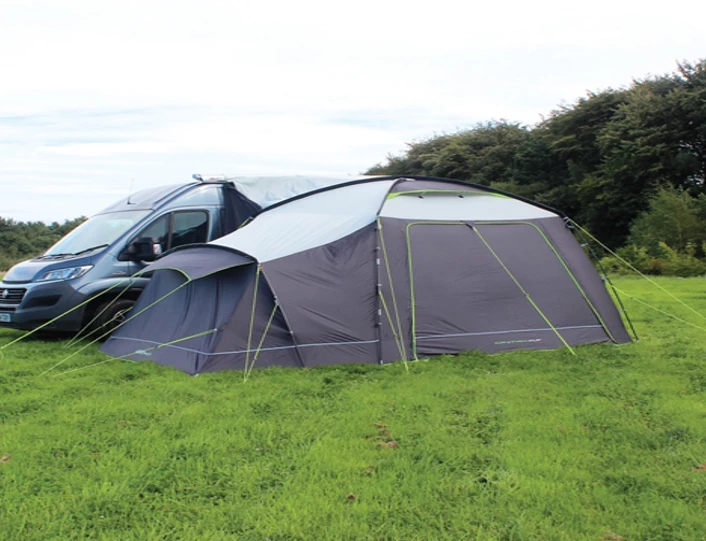 Outdoor Revolutionโs โMovelite Cayman XLFโ is a fantastic short-break motorhome awning, designed specifically to fit taller vehicles from 240cm to 290cm to the awning channel. Perfect for smaller families due to its integrated Two-Berth Inner Tent and sizeable living area; the UKโs best-loved pole-and-sleeve drive-away enjoys a cosmetic makeover for 2017!ย