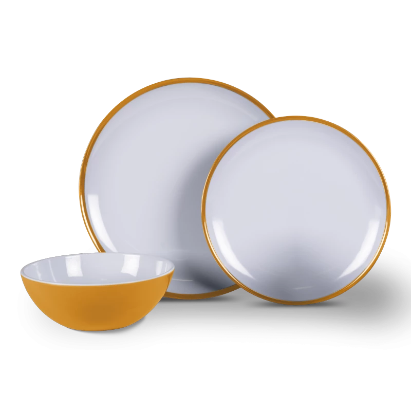 The Sunset set, from our Artisan collection of melamine tableware, combines traditional earthen colours with a speckled design. This 12-piece set, made of 100% melamine, is extremely durable, lightweight and dishwasher safe.