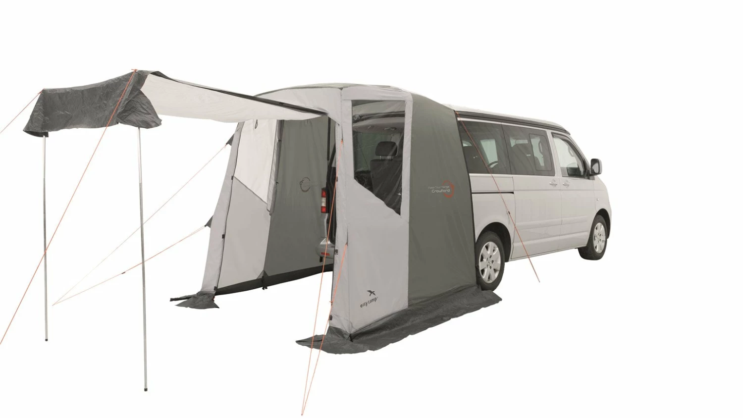 A versatile tailgate design that adds flexible space to campervans, the Easy Camp Crowford design is ideal for VW California T5/6 models. Securely pitched on the tailgate with twin guylines and a toggle-up door with ample walk-in height easily accessed or raised as a canopy for extra shelter from the sun or rain.
