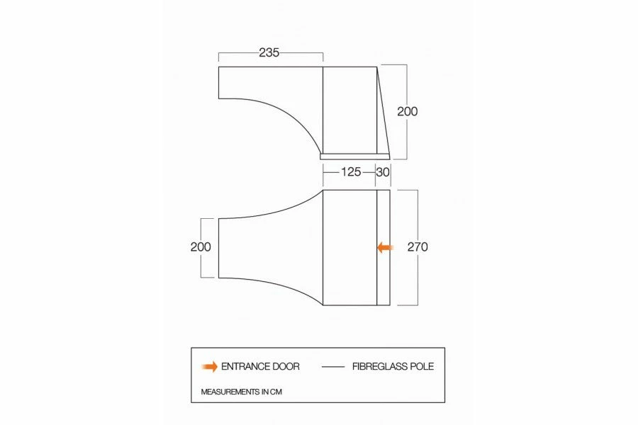 - Pre-angled Poles – Achieve greater internal space than with a standard curve. Provides effective bracing against winds