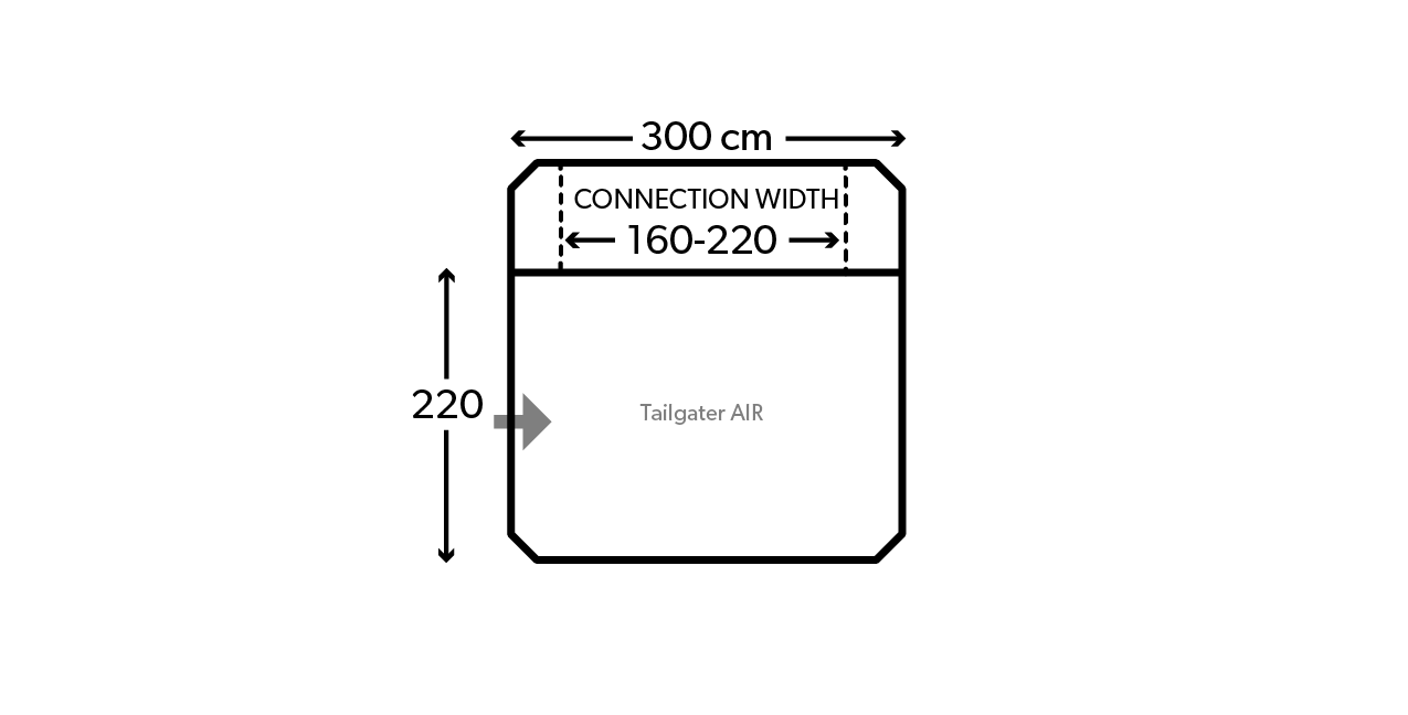 A universal fit awning for vehicles with a rear tailgate such as SUVs, MPVs, crossovers, large estate cars and pick-up trucks fitted with a hardtop. Weathershieldโข 68D material ensures lasting durability and lightweight handling. Simply clip-in the optional two-berth inner tent to accommodate guests. Easy to attach and disconnect, conveniently zip close the Tailgater while you go out and explore.ย
