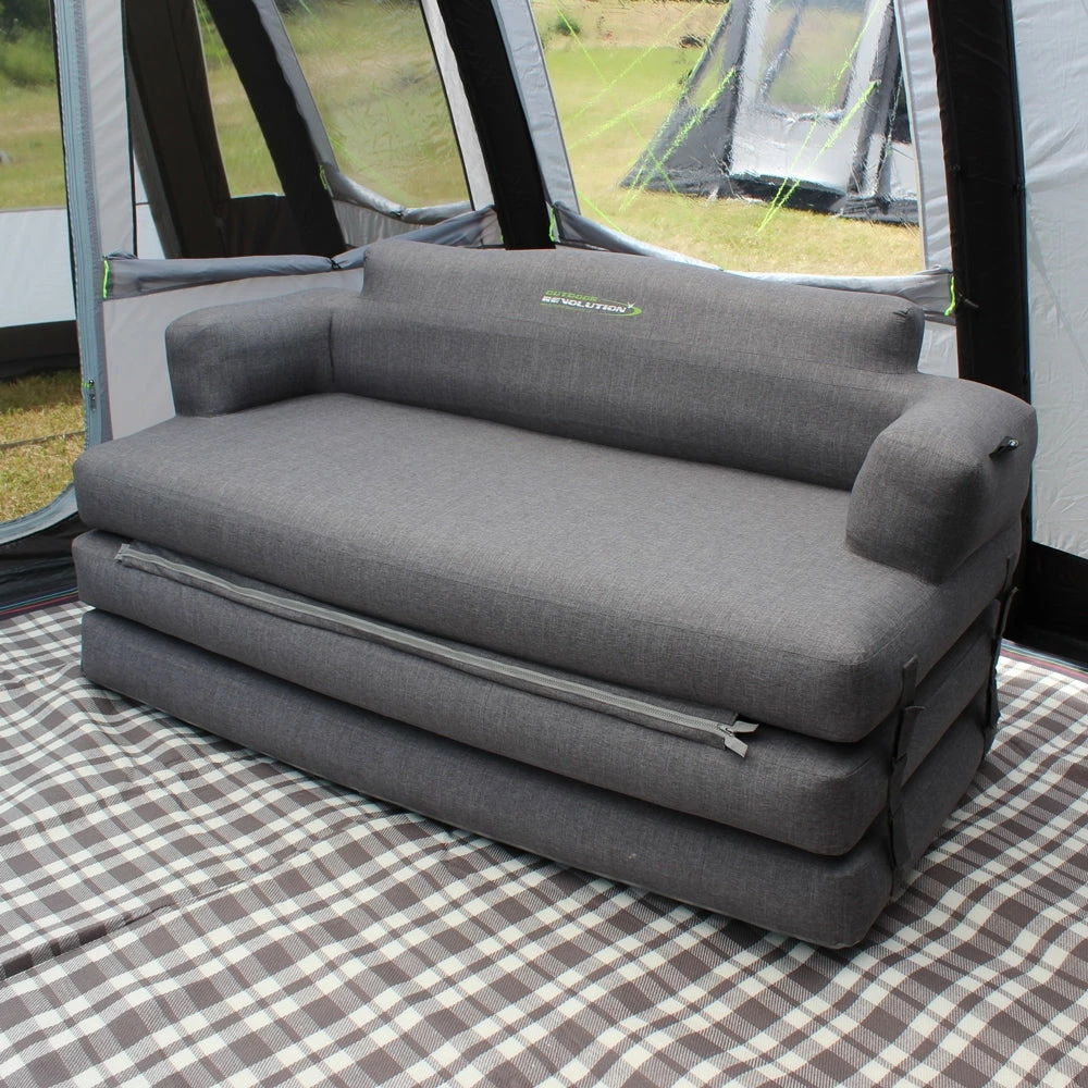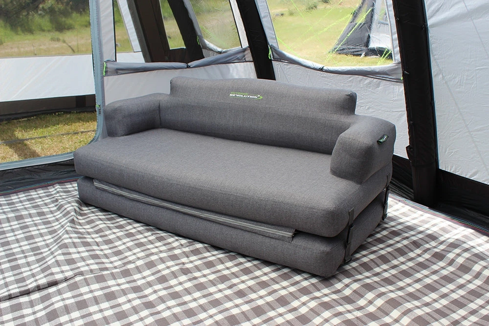 Joining Outdoor Revolutionβs extensive collection of registered designs; the BRAND NEW 5 in 1 Campese Inflatable Sofa Bed is the latest addition to the bestselling range of stylish premium inflatable furniture, offering a truly home from home luxury to enhance your Outdoor Revolution camping experience. We have introduced five practical configuration options, making it functionable as an extra-large high inflatable two-seater sofa, an extra-large low inflatable double sofa, a full-sized inflatable adult bed, a single childrenβs double height inflatable bed or a compact inflatable double bed. One of the most versatile, innovative and value for money portable camping inflatable furniture units available; each arrangement promises to create a comfortable space for relaxation within our caravan awnings, drive away awnings or family tents, which grants maximum support after an evening of exploration.