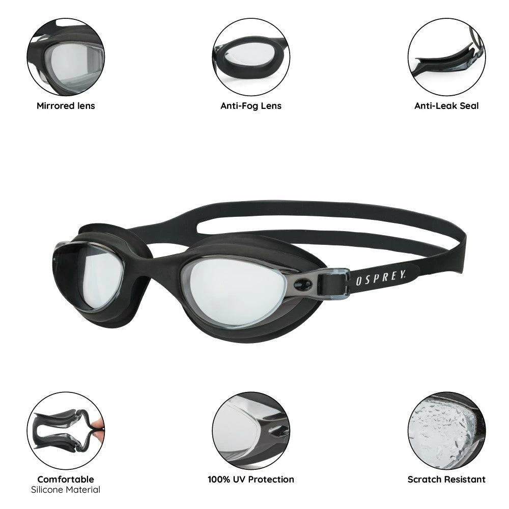 The Osprey Adult Swimming Goggles in black will keep your eyes protected at all times. Featuring anti-fog lenses so your vision remains clear at all times, these goggles can be used in the swimming pool or paddling in the shallows of the sea. They even offer 100% UV protection for when your head is above the surface. Including silicon skirt and adjustable strap, these goggles remain comfortable even after long swimming sessions