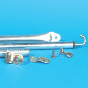 Steel awning roof beam pole, adjustable in length (up to 2.5m max). Includes pole clamp (for attachment to another pole) and hook (for attachment to an awning bracket).