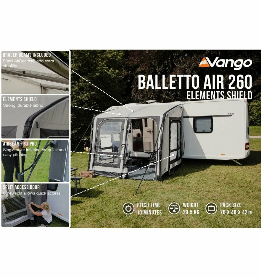 Vango Balletto 260 Air Awning, The perfect caravan awning to unwind and sit back and relax in, and enjoy your perfect holiday.