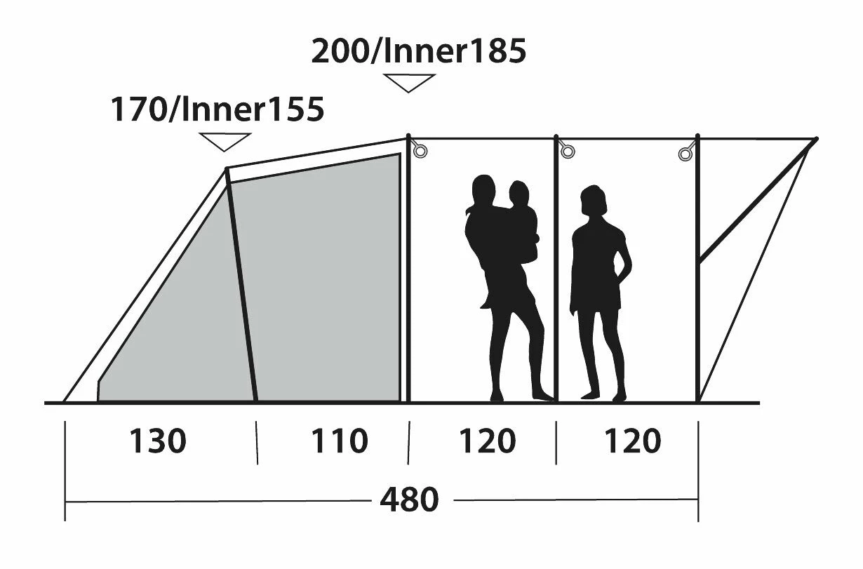 The Outwell Lawndale 500 is Perfect for families and friends seeking fast pitching shelter with plenty of space for long weekends outdoors, the Outwell Lawndale 500 tunnel tent sleeps five in two new Premier Bedrooms. Packed with Outwell innovation, style and design detail, it benefits from a Rain Safe front for shelter over the front door with insect mesh.