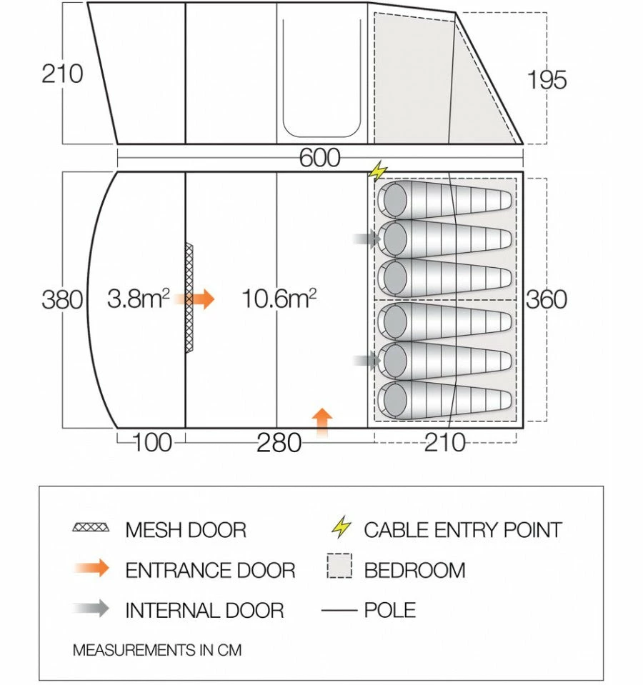 - Cable Entry with Tidies – Neatly feed electrical cables into your tent allowing you to easily keep your camping appliances powered