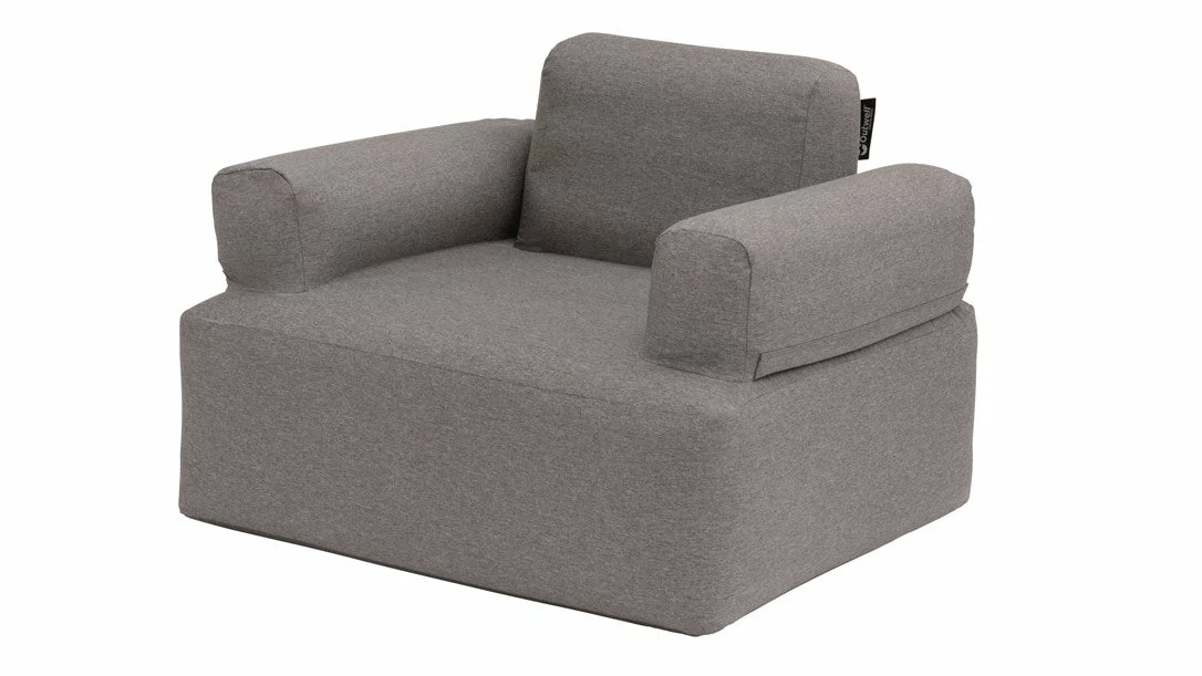 Queick and easy inflatable seating for home from home comfort, soft, comfortable detachable cover, Durable PU-coated two-tone fabric cover with +30 UPF and HH850mm, wide and supportive armrest, 230v built-in pump with autostop and comfort adjuster for easy inflation, Supplied with 230v EU and UK plugs, includes carrybag for easy storage and portability, Big on comfort and small on pack size.