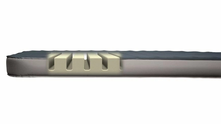 Ingenious heat regulation is achieved through o๏ฌset air core sculpting which enables greater or less body heat retention depending on which mat side is slept on โ a real performance boost when needed for optimum year round comfort. When the mat is turned with the air cores next to the body excessive heat can escape making it easier to cool down during warm summer nights. When the mat is turned the opposite way it gives the user the optimal insulation as the body heat is reflected by the foam. This option is used in colder nights. This air core design also o๏ฌers campers a softer sleep sensation as well as better ease of packing, lower weight and neater packed size.ย
