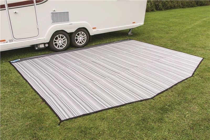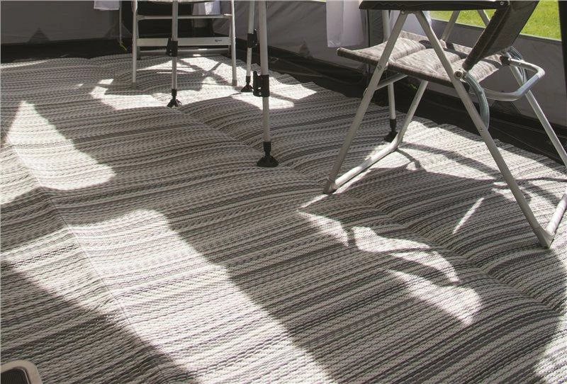 This new Exquisite design is a heavy duty but lightweight attractive striped weave in contemporary colours to complement your awning. This gives a warm, cushioned non-slip finish for comfort. The carpet is easy to fold and comes complete with carry bag.