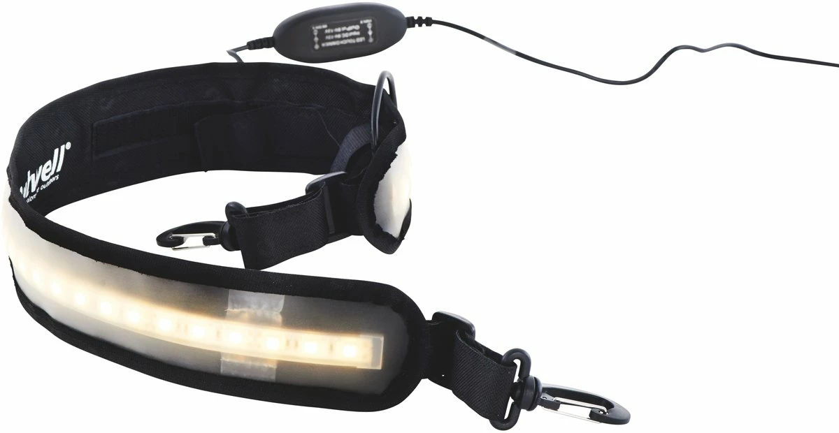 Corvus light belt with LEDs shining a soft yellow light and has many hanging possibilities.